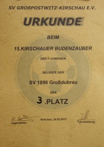 Beim 15. Kirschauer Budenzauber am 24.02.2013 belegte die F-Jugend den 3. Platz.
