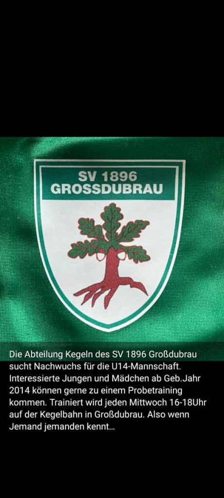 Hallo Sportfreunde und Eltern, wer von seinen Kindern ( Mädchen und Jungen ) hat Interesse mal eine Schnupperstunde jeweils jeden Mittwoch von 16.00-18.00 Uhr auf der Kegelbahn SV 1896 Großdubrau zum Probetraining im Kegeln zu kommen. Ab dem Geburtsjahrgang 2014 können die Mädchen und Jungen gerne daran teilnehmen. Wir würden uns sehr darüber freuen.