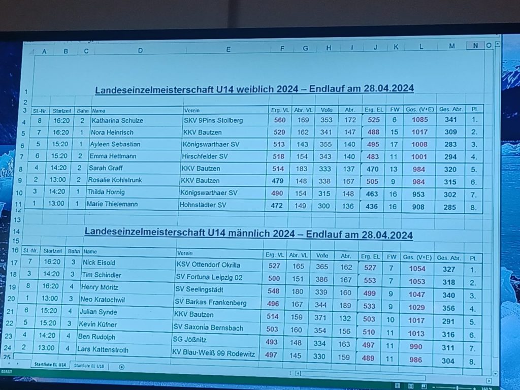 Am 28.04.24 fand der Endlauf der Landesmeisterschaft U14 männlich auf der Kegelbahn in Bernsbach statt. Unserer Jüngster Julian Synde von unserem Sportverein SV 1896 Großdubrau Abteilung Kegeln spielte unter KKV Bautzen und belegte den 5.Platz mit der Gesamtwertung 1017 Kegel. Wir, die Abteilung Kegeln, gratulieren Julian zu diesem Erfolg und auch den Trainern der U14 muss man für diese Leistung gratulieren. Julian mach weiter so und ein großes Lob!