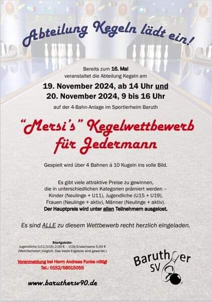 Am Dienstag den 19.11.24 und Mittwoch den 20.11.24 fand wie jedes Jahr der Kegelwettbewerb beim Baruther SV statt. Auch von unserem Verein nahmen Kegelfreunde und Kegelfreundinnen teil und haben bei diesem Wettbewerb gute Plätze belegt. Wir gratulieren zu den Ergebnissen.