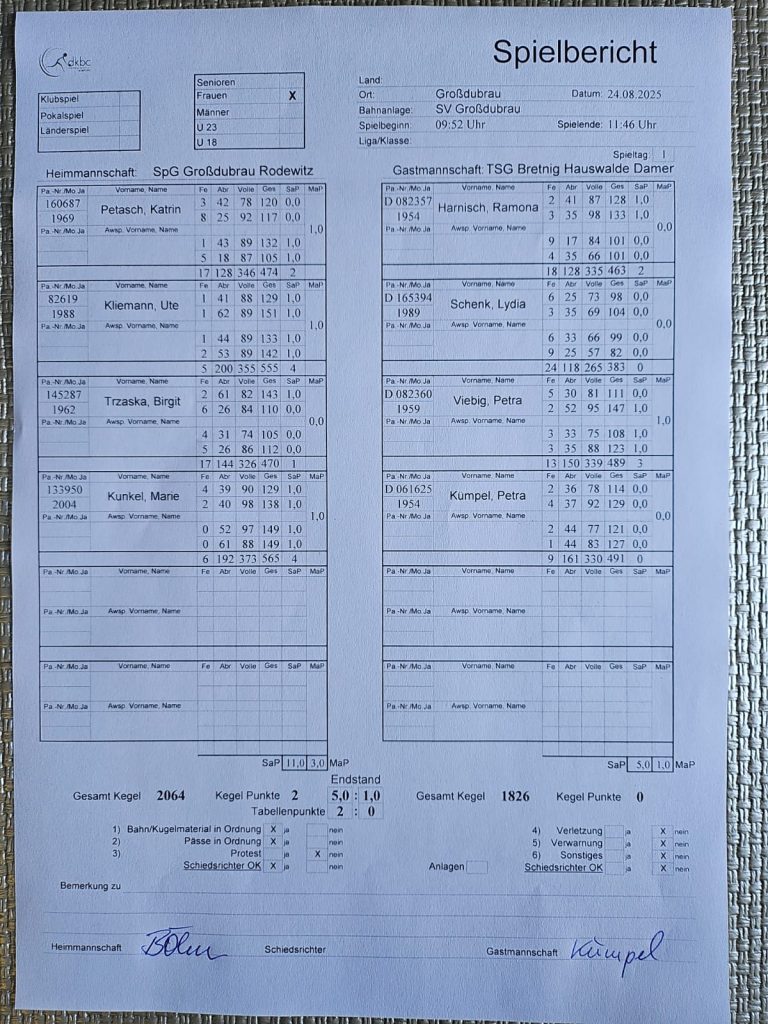 Am Wochenende fanden die ersten Klubspiele im Kegeln statt. Die Frauen und die U14 holten jeweils einen Heimsieg gegen TSG Bretnig Hauswalde und TSV 1865 Ohorn KKV3. Wir gratulieren zu diesen Siegen .